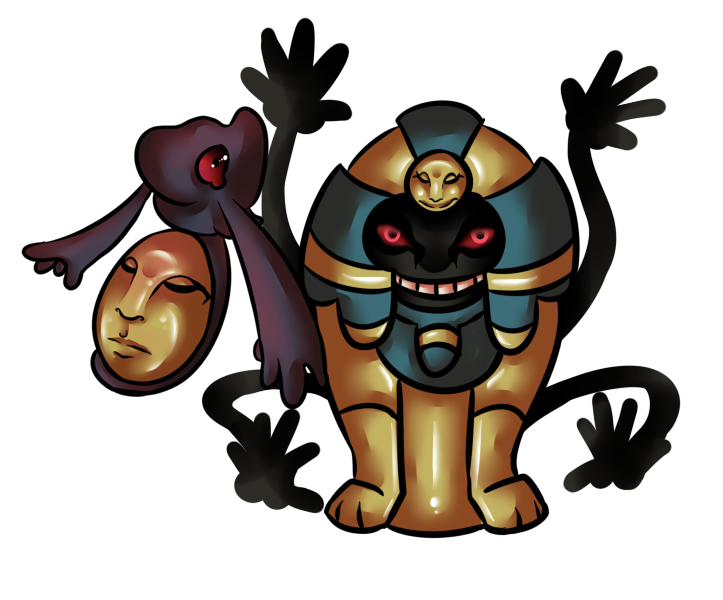 Yamask e Cofagrigus: Esses Pokémons um dia foram seres humanos que morreram em cidades antigas e foram colocados em tumbas imortalizando seus rostos em forma de uma máscara feita com pedras. As antigas civilizações tentaram trazer os mortos de volta a vida, mas sem sucesso. Até que após séculos em tumbas, Yamask nasce, confirmando que o ritual passado havia sim dado certo. Porém um homem tinha sido transformado em um Pokémon, Yamask ao ver seu rosto em uma pedra formando uma máscara, começa a chorar e carrega o objeto com ele para lembrar como era antigamente. A Pokédex diz que as lembranças de Yamask em vida não foram esquecidas, por isso ele sempre chora quando se vê na máscara, lembrando de seu antigo ser.